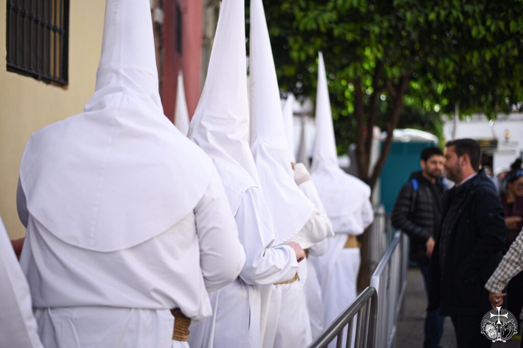 Desplazamiento hacia la Parroquia. El hermano nazareno se dirigirá desde su domicilio hacia el templo por el camino más corto, sin levantarse el antifaz, ni hablar con persona alguna y con la mayor celeridad posible. No podrá quitarse el antifaz fuera de la Parroquia, debiendo observar de forma muy especial esta misma norma al regreso a su domicilio, tras la conclusión de la procesión. El hermano debe ser consciente de que cuando está revestido con el hábito nazareno está representando a la Hermandad.