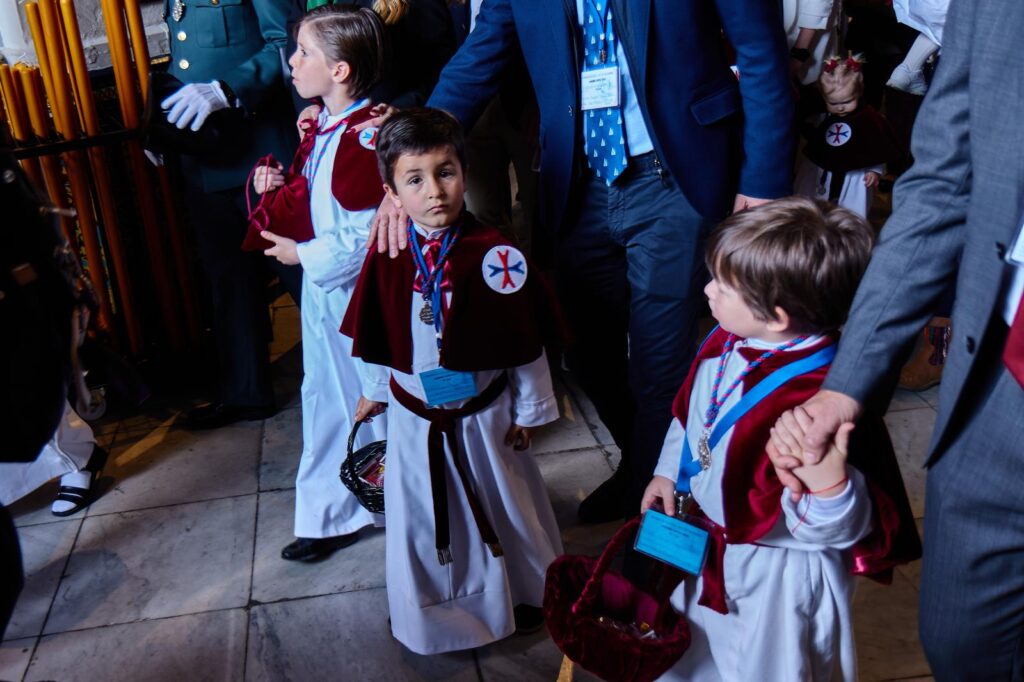 Los hermanos menores de siete años, tanto monaguillos como nazarenos, podrán ir acompañados por una persona ajena al cortejo procesional que deberá portar siempre la identificación nominativa expedida por la Hermandad durante el reparto de papeletas.
